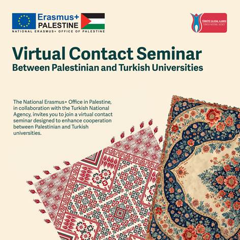 Türkiye Ulusal Ajansı ile Filistin Erasmus+ İrtibat Ofisi arasında yapılan işbirliği neticesinde, Filistin NEO ev sahipliğinde 22 Ekim 2025 tarihinde 15.00-17.00 saatleri arasında düzenlenecek online irtibat kurma seminerine ait ajandayı ekte sizlerle paylaşıyoruz.