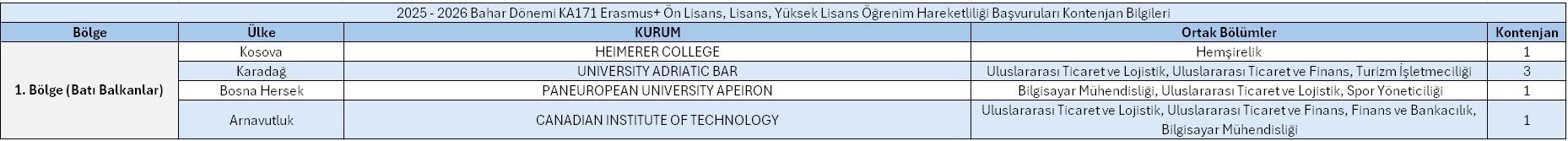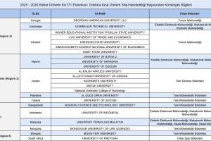 | Erasmus+ Öğrenim/Staj Hareketliliği Son Başvuru Tarihleri | 06 Kasım - 20 Kasım 2025 |